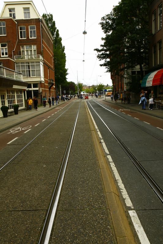 Birthday Trip to Amsterdam - August 2007 -- waiting for the tram (and trying not to get run over by the bikes!)