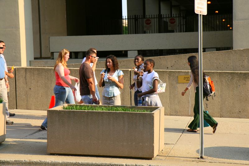 Corcoran street art and Charlie's mohawk - May 2007 -- Becky, Venee and her little sister - enjoying Maggie Moo's