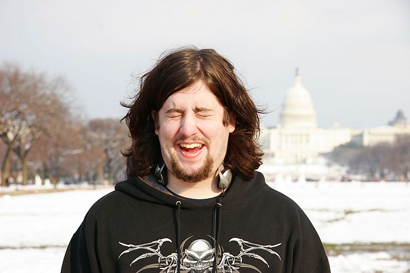 DC snow storm 2006 -- Charlie attempting a smile in front of the Capitol