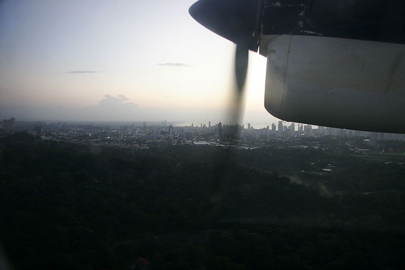 San Blas -- Aerial view of Panama City (much more skyline to the right)